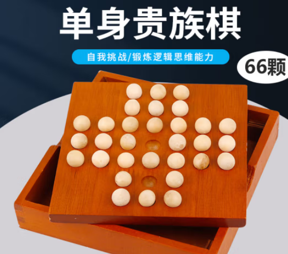 紫湖 单身贵族棋独立钻石棋单人棋桌游儿童小学生木质玩具古典孔明棋含棋夹子收纳袋33颗备用棋子 SKU:SKU:yzwhyp981115