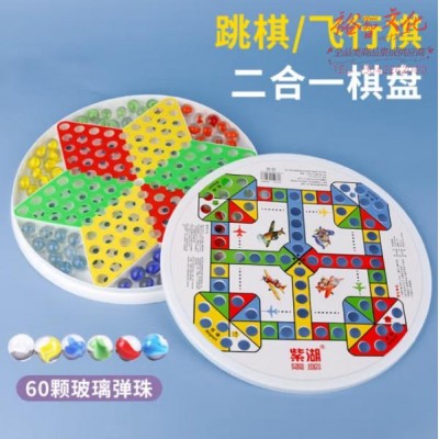 紫湖 跳棋飞行棋二合一 玻璃珠跳棋飞行棋组合套装 60颗棋子儿童玩具桌游 SKU:SKU:yzwhyp981122