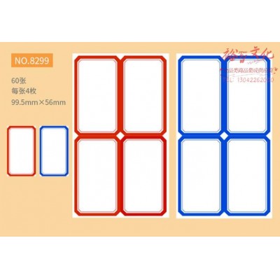 首页 > 办公用品 > 文具 > 金隆兴8299标签贴纸 自粘性口取纸 4枚/张 60张/包 97*57mm 红色 5包装 SKU:SKU:yzwhyp981163