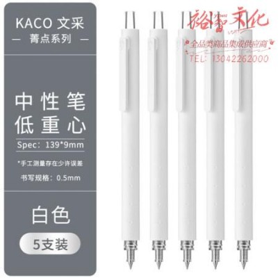 KACO菁点中性笔0.5mm黑色按动笔低重心签字笔考试刷题水笔白杆5支/盒K1028 SKU:yzwhyp981438