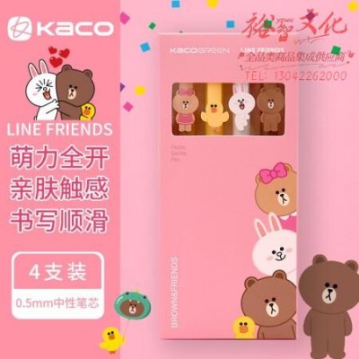 KACO 布朗熊可妮兔限定锐吉中性笔套装按动式0.5mm创意卡通可爱超萌少女心水笔ins清新简约文具4支/盒 K1043 SKU:yzwhyp981470
