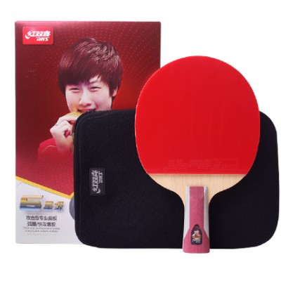 红双喜(DHS)六星级乒乓球拍快攻型直拍升级版T6006-85(附拍包)