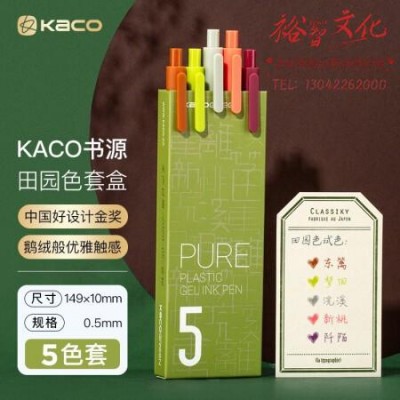 KACO彩色中性笔按动多色签字笔手账笔水笔0.5mm子弹头混色5支/盒田园K1015 SKU:yzwhyp981475