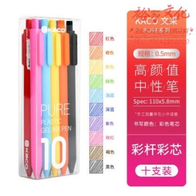 KACO书源彩色中性笔 按动多色彩芯签字笔 手账笔水笔0.5mm彩杆彩芯子弹头10支/盒K1015 SKU:yzwhyp981595