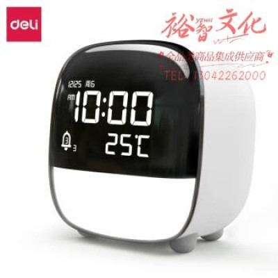 得力(deli)源源得力多功能LCD萌宠电子闹钟1200mAh锂电池 学生阅读床头灯夜灯儿童卧室闹钟 白色8852 SKU:yzwhyp981680