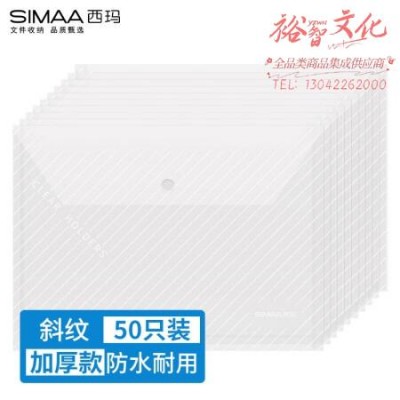西玛(SIMAA)50只装 A4按扣学生透明文件袋 条纹加厚 防水试卷资料收纳袋 办公文件档案袋 文具 20562 SKU:yzwhyp981764