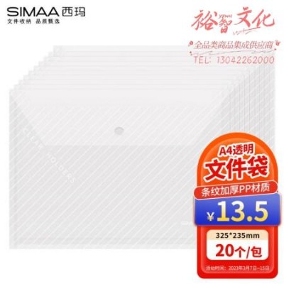 西玛(SIMAA)20个装 A4按扣学生透明文件袋 条纹加厚 防水试卷资料收纳袋 办公文件档案袋 文具 20096 SKU:yzwhyp981765