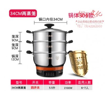 首页 > 电气设备 > 烹调电器 > 志高(CHIGO) JBL-ZHDG加厚电热锅电锅多功能炒煮一体锅家用电炒锅电蒸锅电火锅电煮锅多用途 34cm两蒸笼SKU:yzwhyp981817