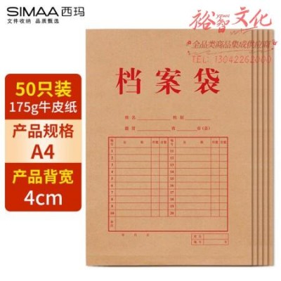 西玛(SIMAA)50只A4牛皮纸档案袋175g 侧宽4cm 标书合同文件资料袋 6812 SKU:yzwhyp981916