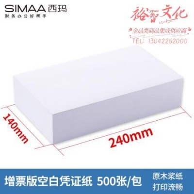 西玛(SIMAA) 空白凭证纸240*140mm 发票版通用会计凭证纸 500张/包 适用用友金蝶财务软件 记账凭证打印纸 SKU:yzwhyp981925
