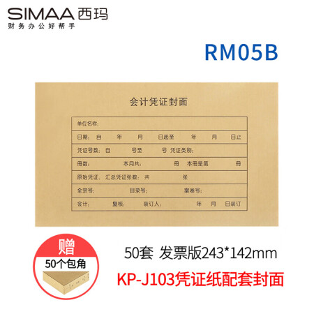 首页 > 办公用品 > 文具 > 西玛(SIMAA)RM05B凭证封面包角 50套/包 243*142mm 适用于金蝶KP-J103/KP-J103K套打空白凭证打印纸发票版 SKU:yzwhyp981930