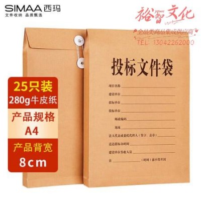 西玛(SIMAA)25只投标专用A4牛皮纸档案袋 280g加厚款/侧宽8cm 6630 SKU:yzwhyp981938