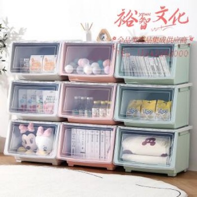 友耐斜口翻盖收纳箱 零食玩具整理箱衣服储物收纳盒带轮可叠放56L 3只装北欧灰 SKU:yzwhyp982054