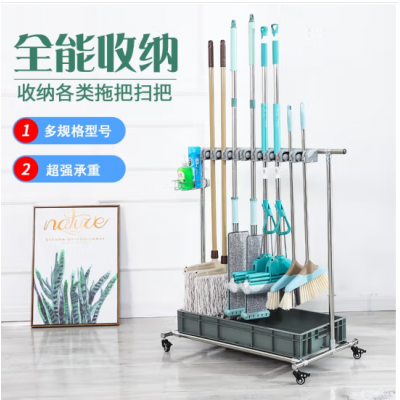 首页 > 用具 > 其他厨房用具 > 落地式可移动拖把架不锈钢置物架放扫把固定挂架清洁工具收纳架子 【10挂12钩】