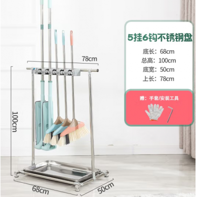 首页 > 用具 > 其他厨房用具 > 地式可移动拖把架不锈钢置物架放扫把固定挂架清洁工具收纳架子 【5挂】【不锈钢盆】不带轮
