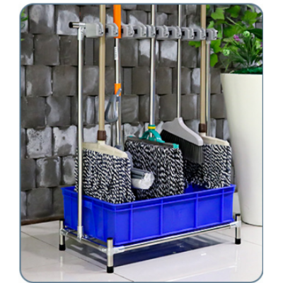 首页 > 用具 > 其他厨房用具 > 落地式可移动拖把架不锈钢置物架放扫把固定挂架清洁工具收纳架子 【8挂10钩】【灰盆】不带轮