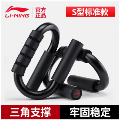 李宁支撑器练臂肌胸肌训练锻炼器泡棉防滑钢制健身器材黑色S型俯卧撑器