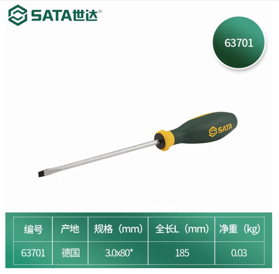 世达63701 G系列双色柄一字形螺丝批3x80MM螺丝刀 SKU:SKU:yzwhyp983094