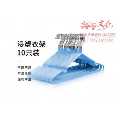 京惠思创【防滑结实耐用】衣架 浸塑晾衣架 干湿两用成人儿童防滑凹槽衣服撑子加粗款优雅蓝 10只装SKU:yzwhyp983325