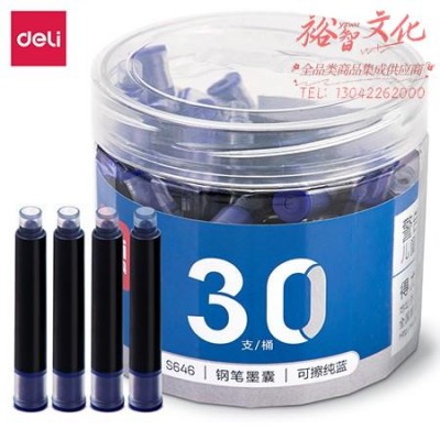 得力S646钢笔墨囊(可擦纯蓝)(30支/桶) SKU:yzwhyp983714