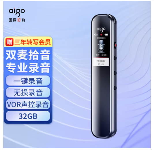 首页 > 广播、电视、电影设备 > 音频设备 > 录音外围设备 > 爱国者 aigo录音笔R3312 32G一键录音 专业录音 高清降噪 学习培训商务会议采访 录音器 MP3播放 灰色 SKU:yzwhyp983834