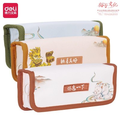 得力66916 高龄卡通国潮瑞兽来袭笔盒式多用途笔袋(混)(只) SKU:yzwhyp984035
