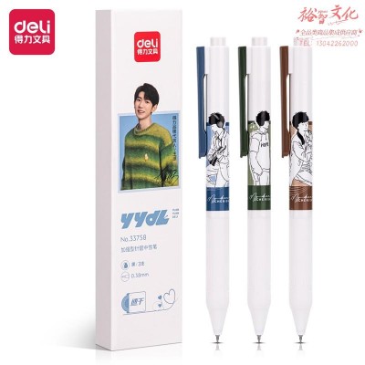 首页 > 办公用品 > 文具 > 得力33758 限定记忆按动学生中性笔0.38mm加强型针管(黑)(3支/盒) SKU:yzwhyp984064
