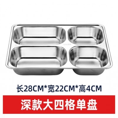 首页 > 用具 > 餐具 > 成人儿童食堂方形分格餐盒加深加厚带盖饭盘快餐盘 分格快餐盘(201材质无盖)