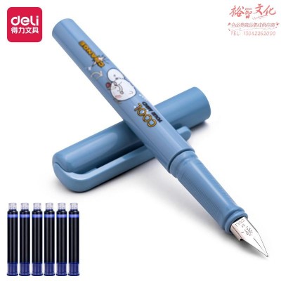 得力A948 源源得力练字钢笔EF明尖(可擦纯蓝)(1笔 6墨囊 1贴纸/卡) SKU:yzwhyp984487