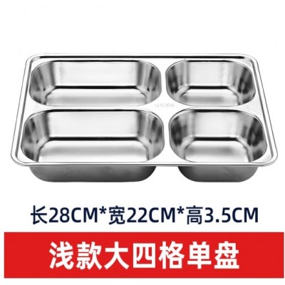 首页 > 用具 > 餐具 > 成人儿童食堂方形分格餐盒加深加厚带盖饭盘快餐盘不锈钢餐盘(304材质+201钢盖)