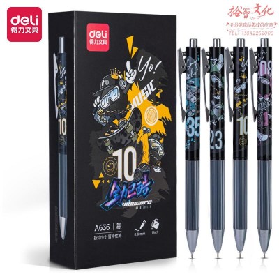 得力(deli)全力以酷系列中性笔 0.38mm全针管签字笔按动笔水笔 黑色 12支/盒A636 SKU:yzwhyp984596