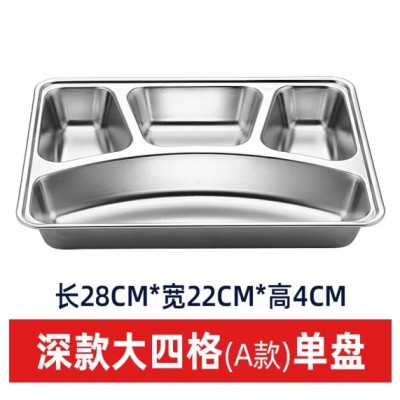 首页 > 用具 > 餐具 > 成人儿童食堂方形分格餐盒加深加厚带盖饭盘快餐盘不锈钢快餐盘(304材质+塑料盖)