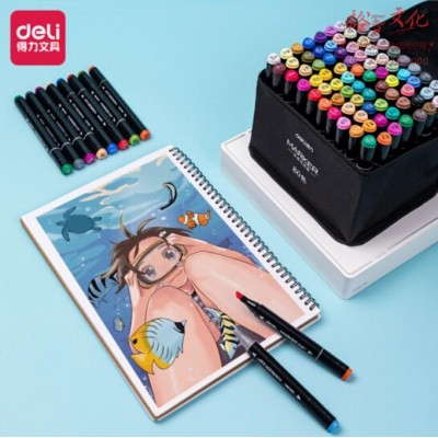 得力(deli)33807马克笔套装80色 双头速干学生儿童水彩笔绘画画笔生日礼物 便携提袋带底座 SKU:yzwhyp984849
