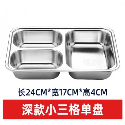 首页 > 用具 > 餐具 > 成人儿童食堂方形分格餐盒加深加厚带盖饭盘快餐盘不锈钢快餐盘(201材质+201钢盖)