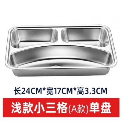 首页 > 用具 > 餐具 > 成人儿童食堂方形分格餐盒加深加厚带盖饭盘快餐盘不锈钢餐盘(304材质+304钢盖)