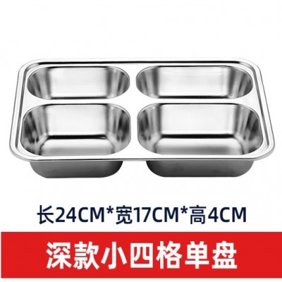 成人儿童食堂方形分格餐盒加深加厚带盖饭盘快餐盘不锈钢快餐盘(201材质+201钢盖)