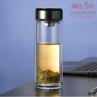 希诺XN-6712 玻璃双层带盖直身杯 无色透明过滤便携水杯 本色 360ml SKU:yzwhyp985326