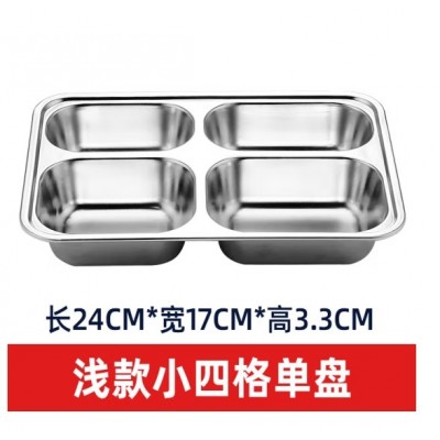 首页 > 用具 > 餐具 > 成人儿童食堂方形分格餐盒加深加厚带盖饭盘快餐盘不锈钢餐盘(201材质无盖)
