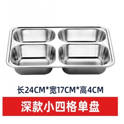 成人儿童食堂方形分格餐盒加深加厚带盖饭盘快餐盘分格快餐盘(201材质+201钢盖)