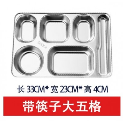 首页 > 用具 > 餐具 > 成人儿童食堂方形分格餐盒加深加厚带盖饭盘快餐盘不锈钢快餐盘(304材质+塑料盖)