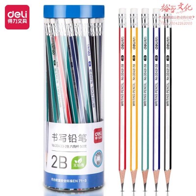 得力33433-2B_50支2B皮头六角杆铅笔(混)(50支/筒) SKU:yzwhyp985863