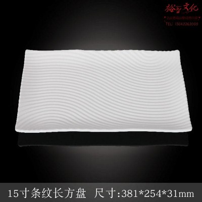 首页 > 用具 > 其他厨房用具 > 台顺密胺餐具6820 15寸条纹长方盘5个起售 SKU:yzwhyp986101