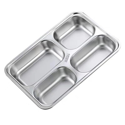 首页 > 用具 > 餐具 > 成人儿童食堂方形分格餐盒加深加厚带盖饭盘快餐盘不锈钢餐盘(201材质无盖)26*18*4