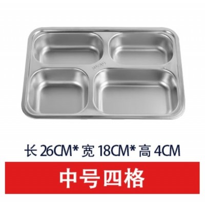 首页 > 用具 > 餐具 > 成人儿童食堂方形分格餐盒加深加厚带盖饭盘快餐盘不锈钢快餐盘(304材质无盖)