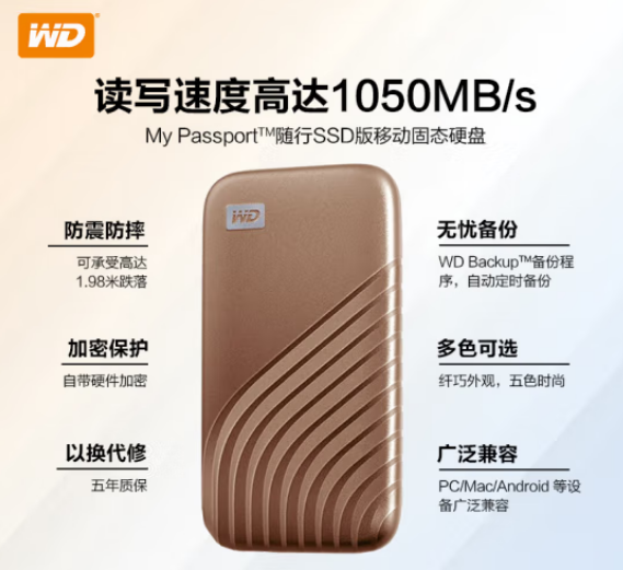首页 > 信息化设备 > 移动存储设备 > 西部数据(WD)2TB NVMe 移动固态硬盘WDBAGF0020BGD-CESN(PSSD)My Passport随行SSD Type-C接口 传输1050MB/s笔记本手机电脑 SKU:yzwhyp986206