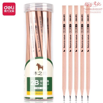 得力33648-2B_30支PET桶装原木三角杆2B铅笔(混)(30支/桶) SKU:yzwhyp986247