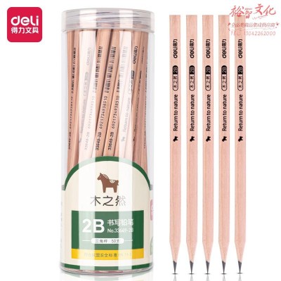 得力33649-2B_50支PET桶装原木三角杆2B铅笔(混)(50支/桶) SKU:yzwhyp986248