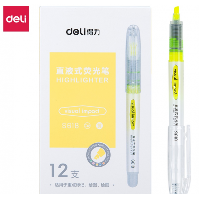 得力荧光笔S618 直液式荧光笔(黄色)