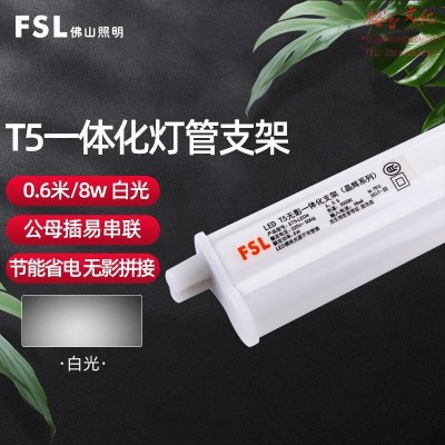 佛山照明(FSL)LED灯管 T5支架一体化LED灯 带灯管 0.6米8W白光 两插口 套电工电料SKU:yzwhyp986558