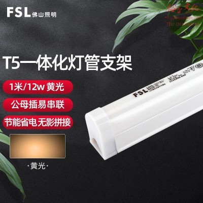 佛山照明(FSL)LED灯管 T5支架一体化LED灯 带灯管 1米12W黄光 两插口 套电工电料SKU:yzwhyp986618